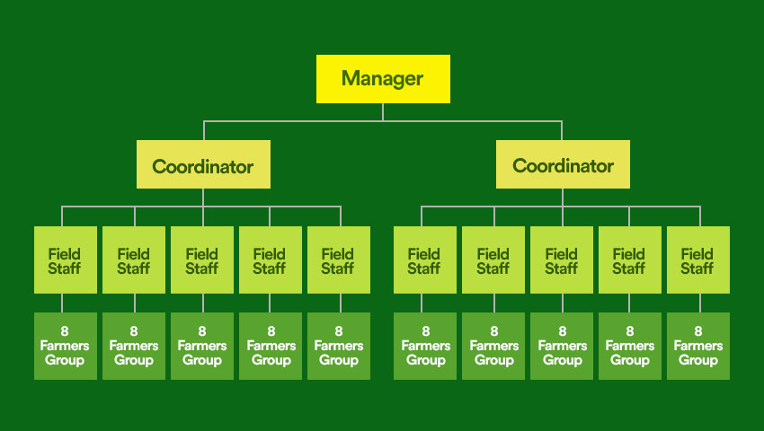 All the operations and activities of the society are carried out by our tem which consists of experienced and trained professionals in their line of work. There are 10 field staffs that work to provide all the support and aid 80 farmer groups. These field staffs are responsible for organizing the activities of the farmer groups that make the society. These field staffs report to the coordinators who administer these field staffs. In succession, these coordinators report to the manager of the society.